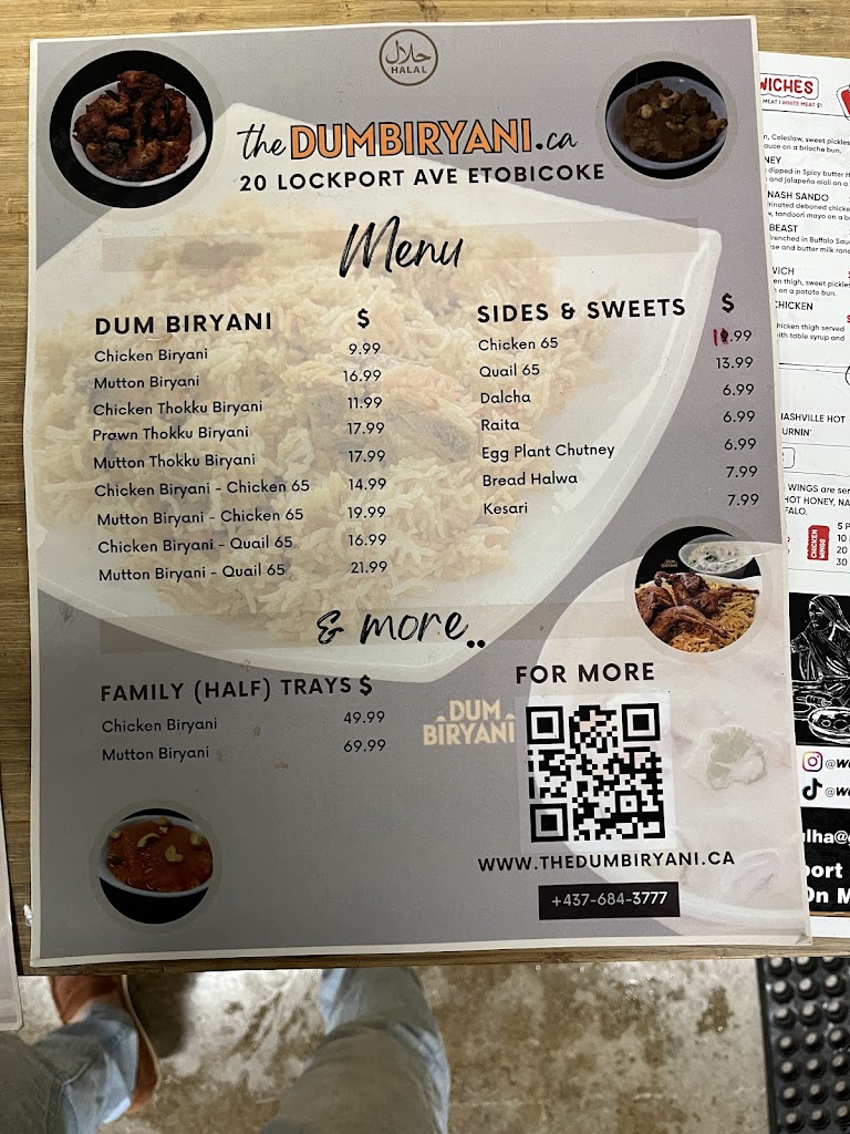 , The new and first location of Dum Biryani has finally opened. It was very busy today. My family and I took a take out. The food was absolutely amazing. I Would recommend everyone to try Dum Biryani in Etobicoke. Hopefully, I can click some pictures the next time I order this delightful food.
