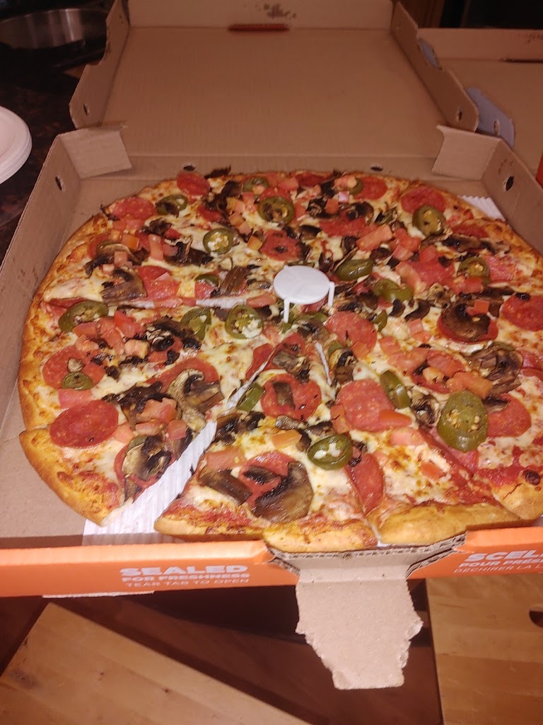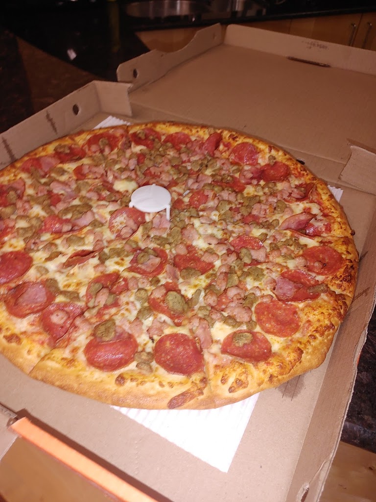 Fast and safe delivery. Pizza is average good. The fries looked and tasted like its re cooked. The chicken wings are overcooked the skin is hard. Needs improvement.