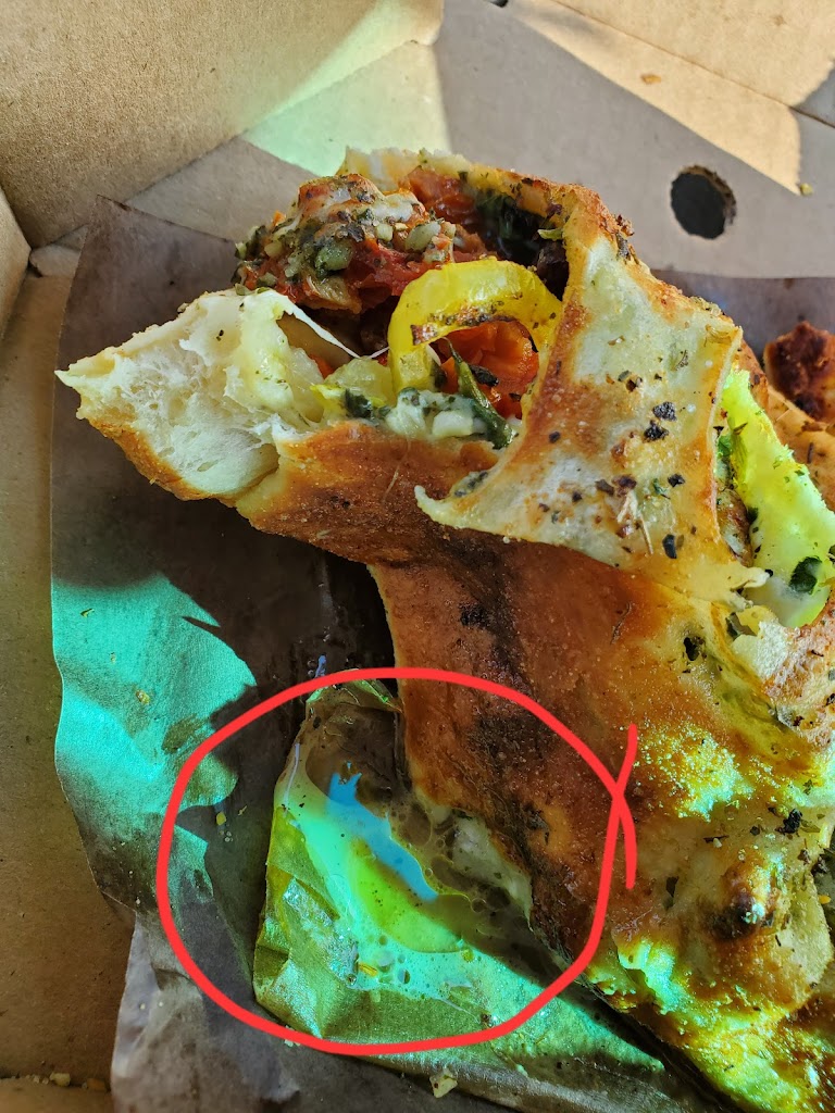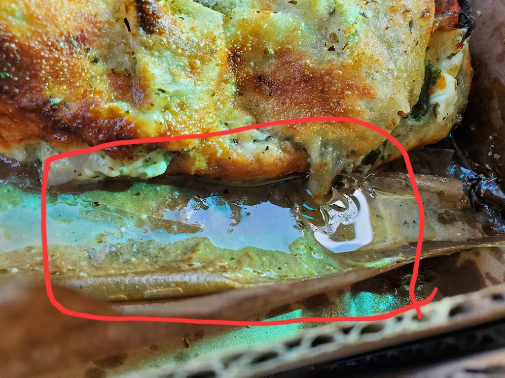 My experience with their regular Pizza were excellent, so this time I ordered 'stromboli' to try. It was a total nightmare. The stuff I got in the box was literally dripping oil all over and can be seen in pictures. There were big chunks of melted cheese in it and crust was paper thin. This stromboli was a total waste of your money and a disappointment 😞