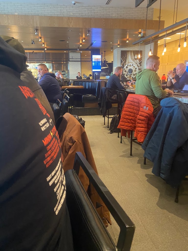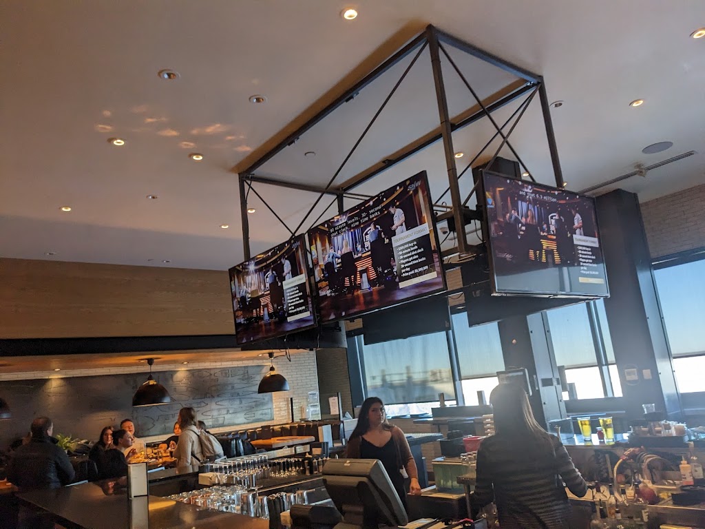 A decent airport restaurant. Price is average. Lots of noise from the bar.