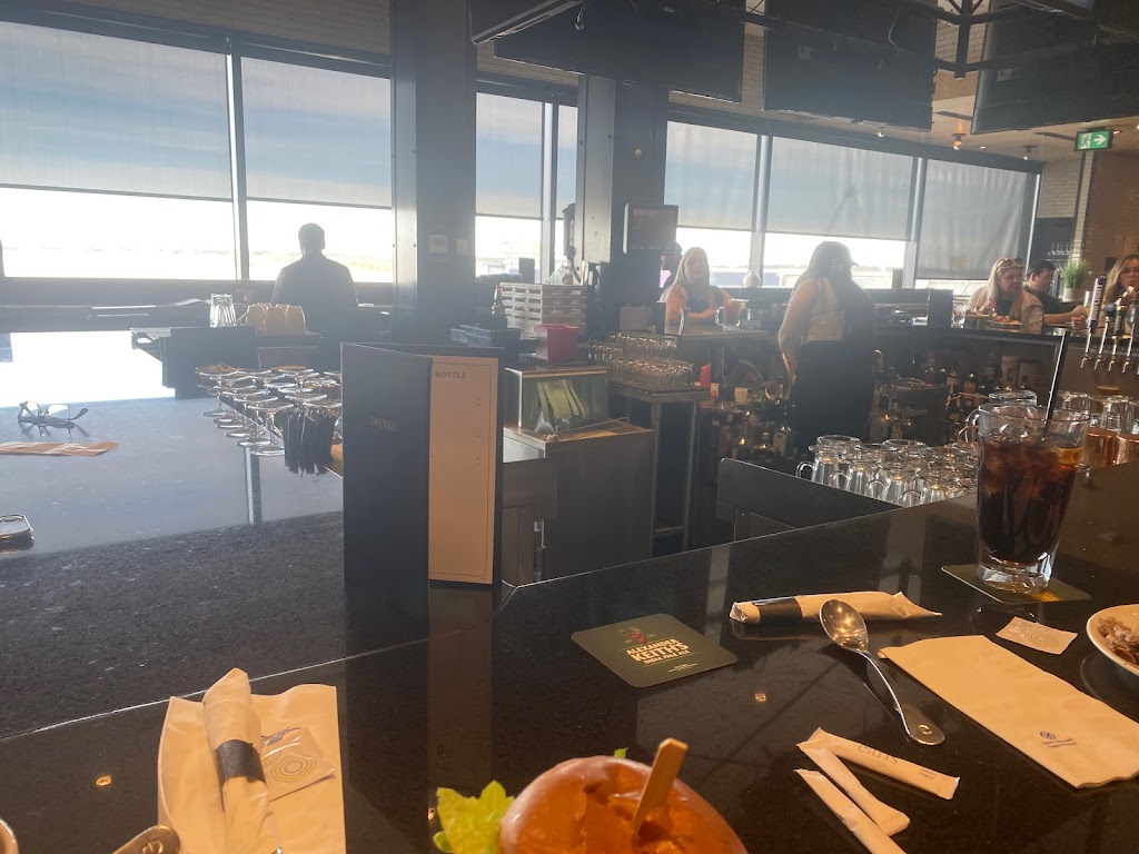 Great place to sit,eat and drink before your flight, only suggestion, have the flight numbers announced in the restuarant