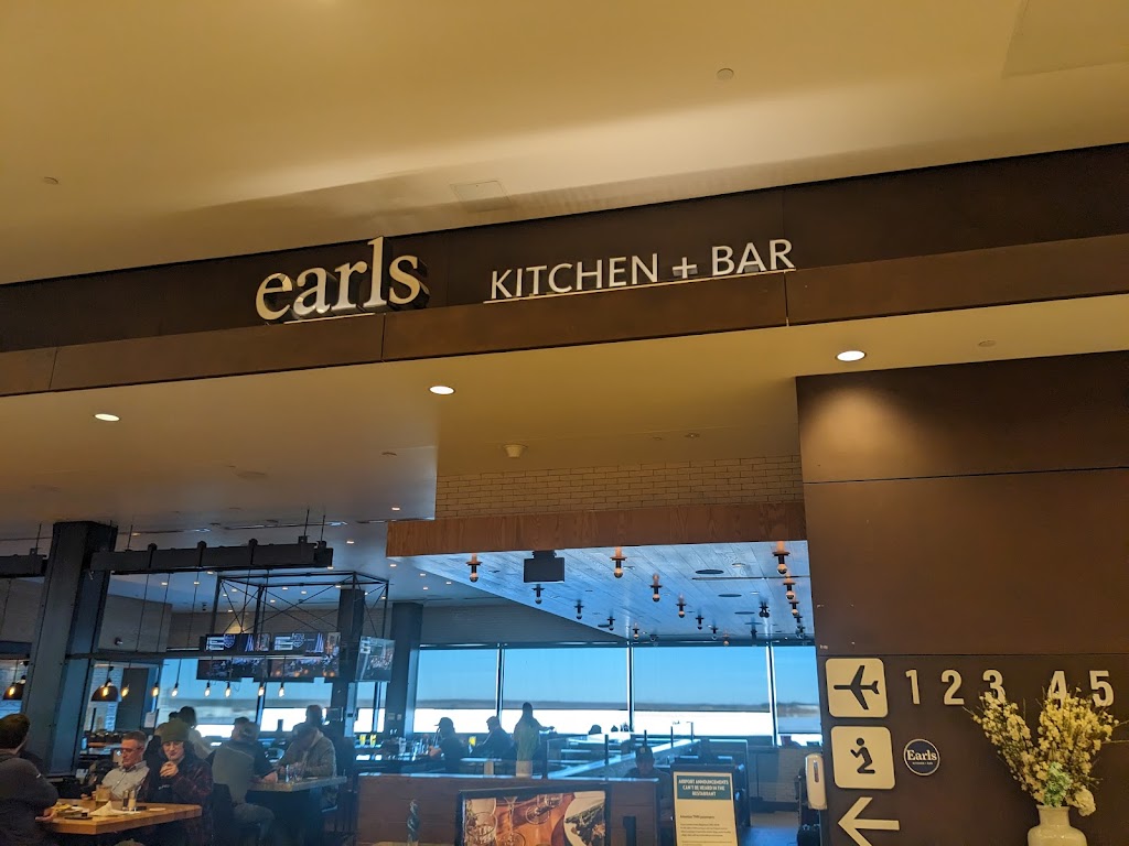 Quick service and the only dining option past security. Regular earls menu which isnt a downside.