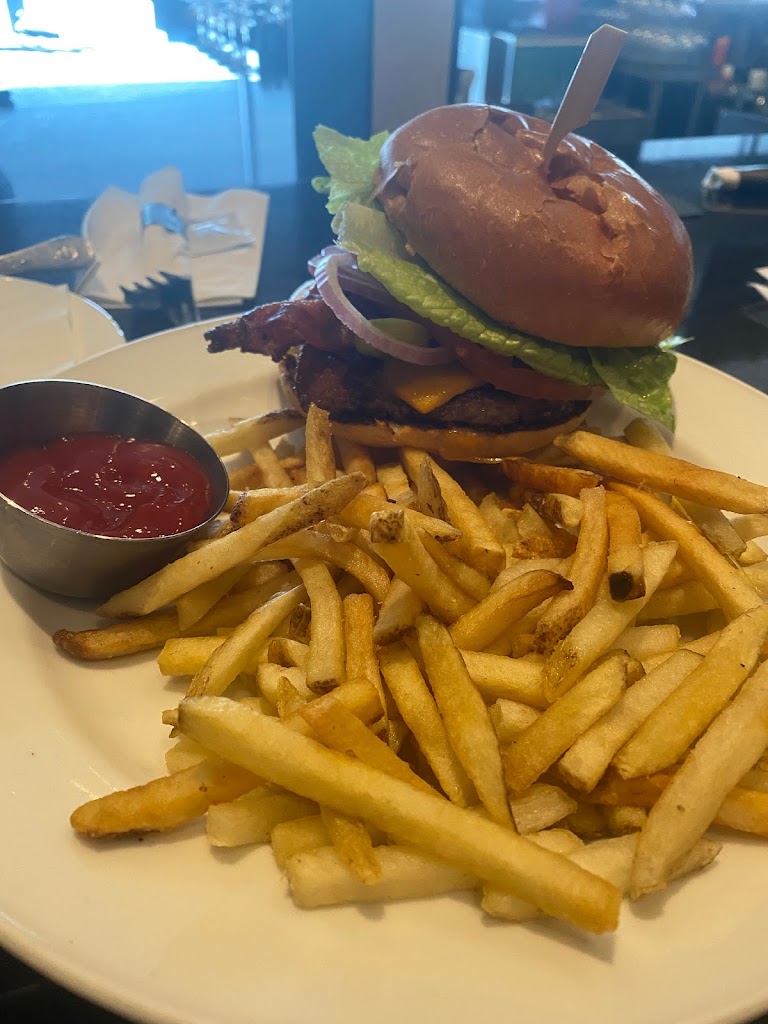 Had the cheddar burger with bacon and side of the garlic fries. The meal tasted great when washed down with a Alexander Keiths beer that was just the perfect Temp. Only complaint is that its still a burger and beer and its pretty insane to pay 33.00.