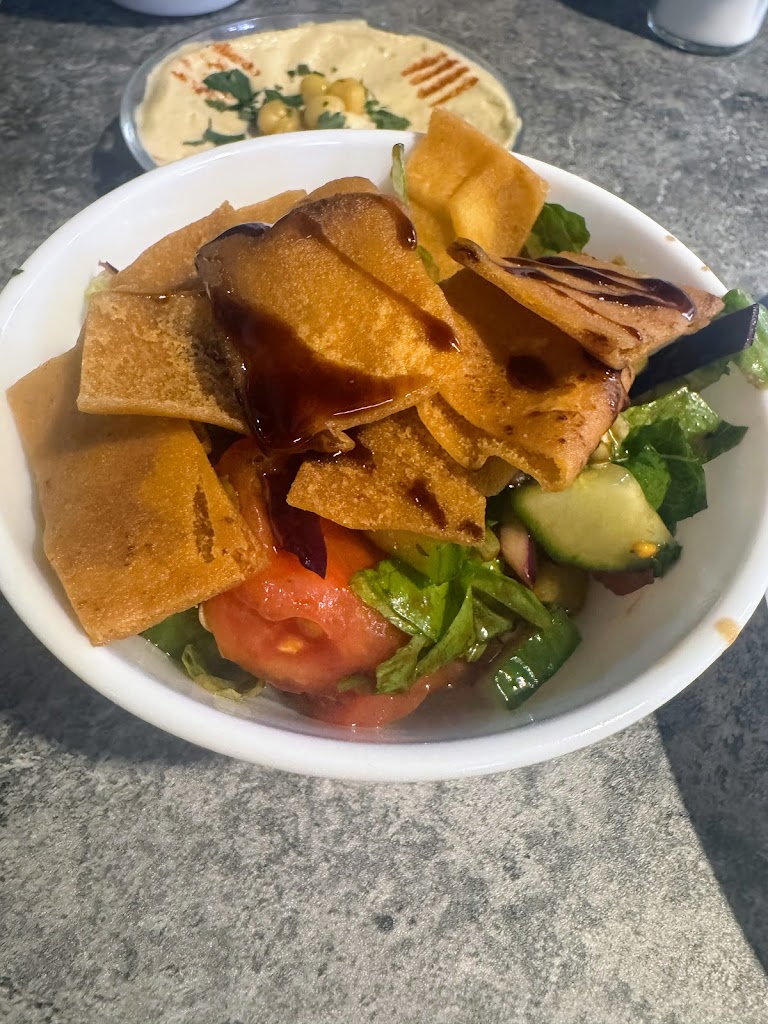 Food was really good, I always get the shish tawouk or the chicken shawarma sandwich and it taste really good. Also recommend the Thai bites and fatoush salad! Atmosphere is really nice and the place is clean, service is also really nice