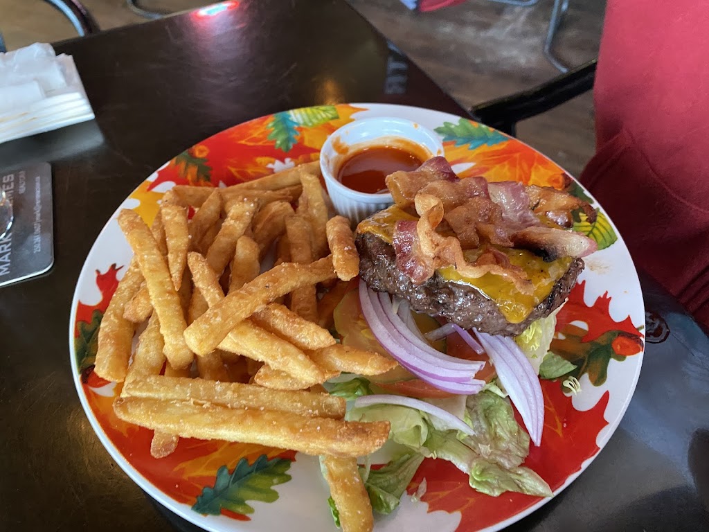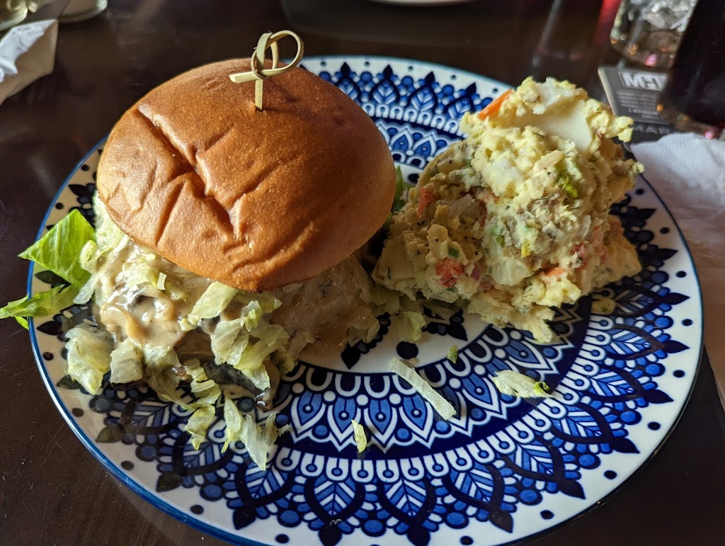 i had a delicious Cesar and jackfish burger (cooked well) with fries and gravy, all was excellent plus excellent service !