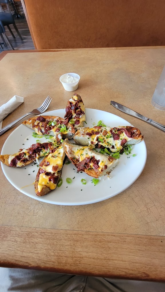 Your standard pub food. I really dislike when potato skins are advertised and you end up with potato boats. Skins are supposed to be a bunch of thinly sliced potatoes with the skins on them piled high (not 4 potatoes cut into chunks. Potatoes were gray and seemed old). Maple chicken sandwich was good I could definitely taste the maple but it wasn't as good as it was defined in the menu! Good for a quick bite! Waitress and hostess were great, cleanliness of the upstairs wasn't great as there were crumbs on my table and the suede bench seat.