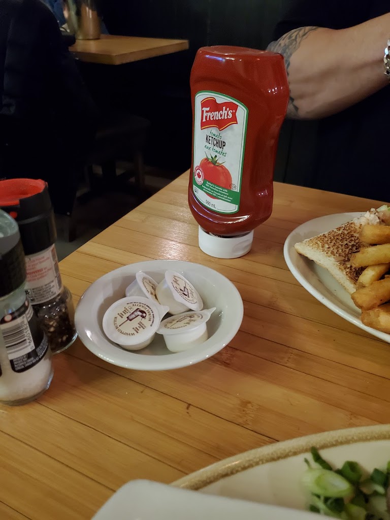 We were visiting Fredericton for the first time. We prefer to dine locally (vs. big franchises that you can find anywhere). We enjoyed our meal so much, we returned the next day for lunch!! Our first meal was dinner (and I remembered to take photos) The seafood casserole was recommended and it did not disappoint. With large pieces of scallop, shrimp and white fish in a delicious sauce and cheese topping, it came with choice of potatoe (I chose baked) and seasonal vegetables...which I always anticipate as boring....but this was a yummy combination of julienned carrots, zucchini and peppers that had a great seasoning. My bf got the club sandwich with fries and coleslaw. Made to perfection. And the slaw was a vinegrette dressing...not soggy, with the right amount of tang! I appreciated that this restaurant also supports Canadian when I saw the French's ketchup. The house wine was a Pinot Grigio by Copper Moon that paired well with my meal. And dessert!! The Sticky Toffee Cake...very sweet and the perfect size to share (Too big to eat alone...unless you have a major sweet tooth!!) Our second meal, I didn't take photos...but the meals were equally delicious. Our lunch companion had one of their signature burgers and was quite pleased. My bf went simple with a BLT and fries and was impressed. I ordered the Adult Grilled Cheese sandwich...loaded with rotisserie chicken, three cheese mix and dill pickles (grilled inside)...omg, so delicious! I also paired my adult sandwich with a local adult beverage by York County Cider. I enjoyed it so much, I stopped by the local NB liquor store to take some back home to Ontario!!