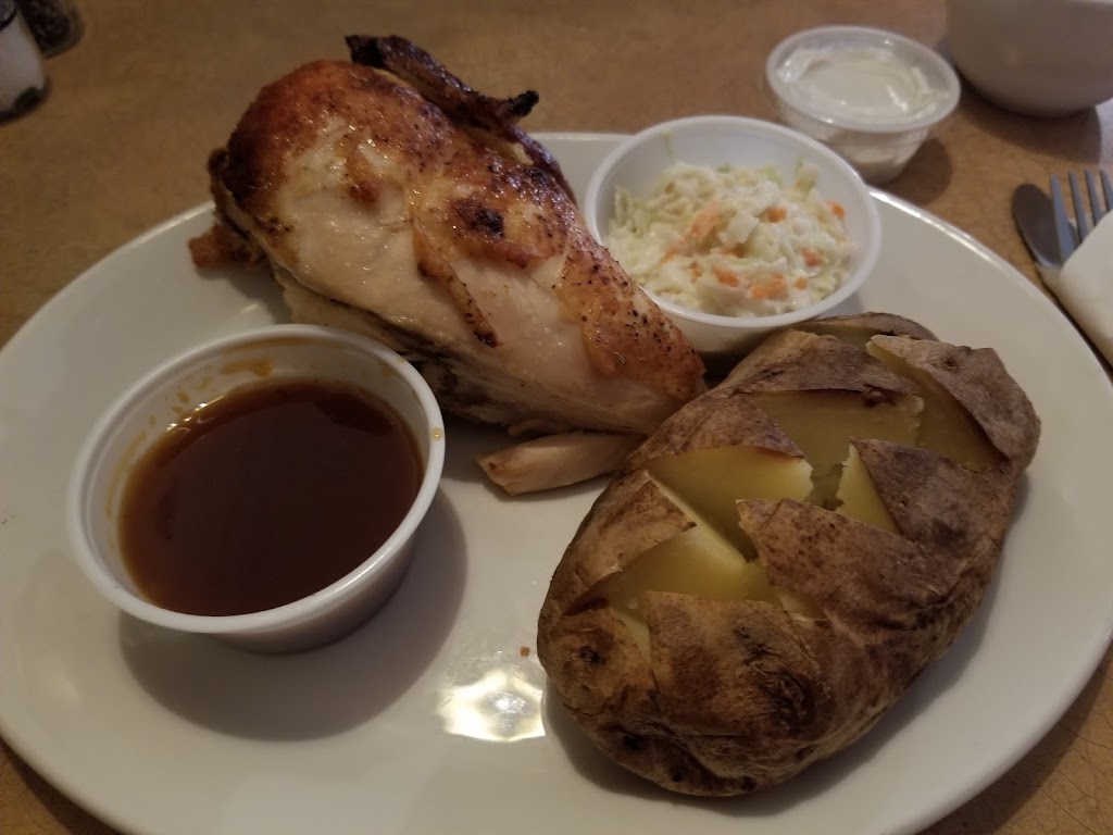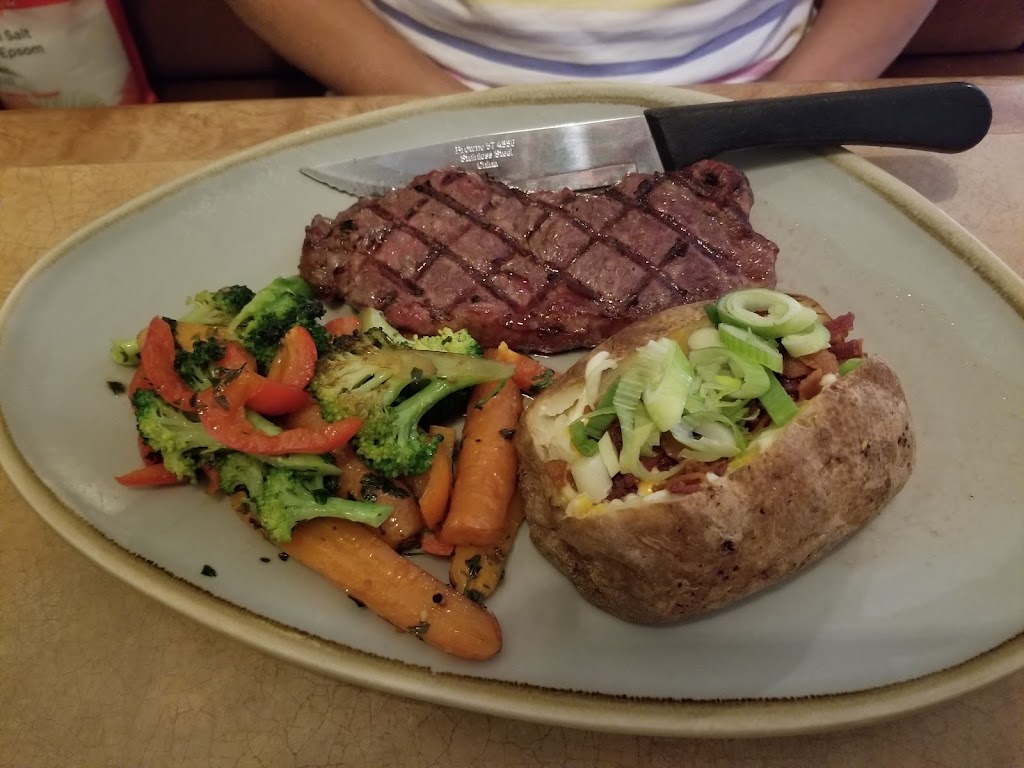 Had the 8oz steak. They didn't have anything bigger. This steak was tender, it didn't have any seasoning or sauce, pretty plain. It completely reminded me of eating at Ponderosa as a kid, just this steak was tender