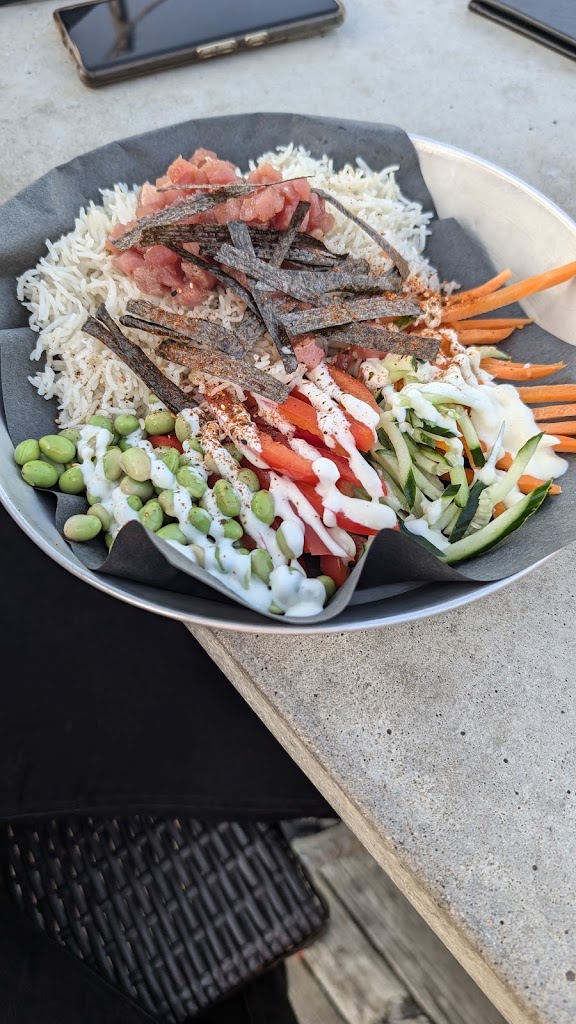 We had horrible service here. I am not one to complain about service staff, as my partner and I have a combined 15+ years in the service industry. We understand what it means to be slammed, for mistakes to happen, and to have unreasonable customers. However, the service we had here tonight was some of our worst ever. To start, we waited an hour and half for our food from the time we ordered. This may have been more tolerable if they had at least gotten us our appetizer (bread and hummus) at any point rather than with the main course. At the 60 minute mark we contemplated just leaving, but we had ordered drinks to start and did not want to dine and dash. We came to regret this. It felt like we were being held hostage by our food order. Sometime during our wait, we asked for more water (not wanting to order more drinks because it had way too long already). At this point, the server gave all the customers around us water despite that we had specifically requested it. We tried to flag the server but even when we did she would only avoid us. At the 90 minute mark we got out food. Admittedly, it was tough to be upset because the poke bowl and the taco was quite good (the hummus not so much. Despite not wanting to, we complained to the server about who spoke with their supervisor. We were compensated 20% off. Honestly, I wish we would have just left early after the drinks. It would have saved us the money and the time. We love to support local businesses but this experience made it hard for us to want to come back. Good atmosphere though.