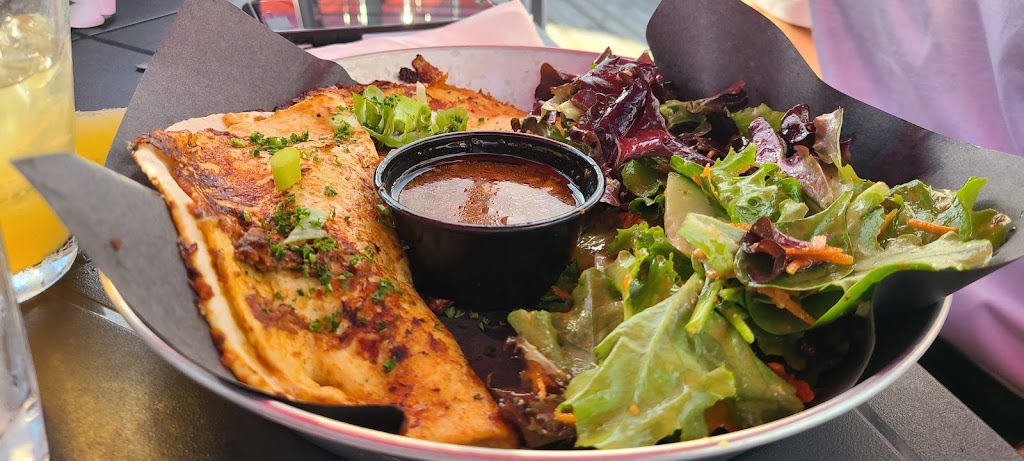 I went with 3 friends. We had the Mac and cheese, the beef taco, burrito bowl and tuna poke bowl. The portions were very small and lacking flavor. The beef taco was soggy. The tuna poke bowl was very small and lacked flavor. Kinda tasted like soap. I was over all disappointed. If you want a drink on the river, this place has a nice atmosphere. Just avoid the food. Many better places to eat that are better. Also they no longer have flat bread of the week.