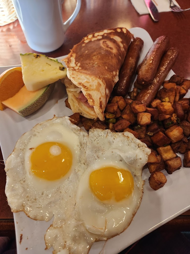 Ive been a supporter of this restaurant for years however with each visit the quality of the food dips but the price increases. On my last and final visit to the restaurant I waited 50 minutes with the restaurant half empty on a Monday for lunch. When my ham and cheese crepe arrived it was overcooked quite brown almost to the point of being crispy. The crepe cost $20 including real maple syrup. Loyal customers arent willing to put up with increased prices, lowered service and poor food time and time again. Its sad to see how this restaurant has fallen from where it once was.