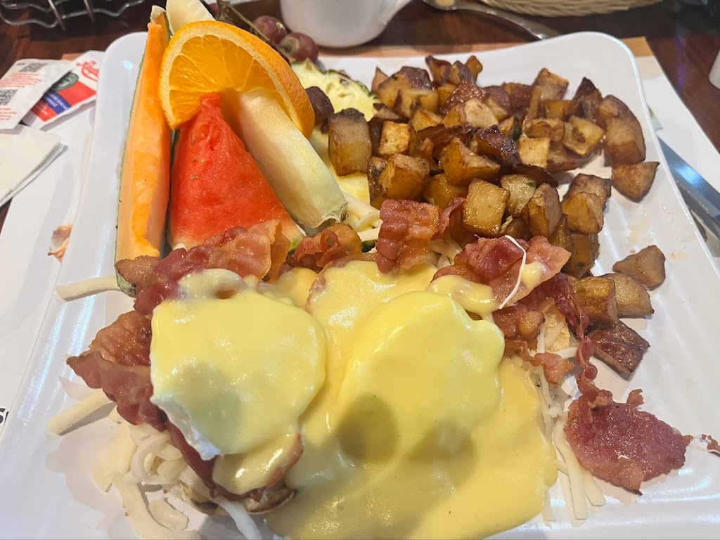 Had breakfast on a Wednesday at 11:45 am, I had eggs Benedict with ham, wife had the classic, Benedict was a mess, couldnt see the bread, could have been 2 fried eggs under there instead of poached, dont know everything was covered with so much sauce, wifes pancakes were hard around the edges, everything seemed like it had been sitting for a while, service was good, I know I could have said something but I didnt feel like having a confrontation, $48, never again, think Ill eat breakfast at home.