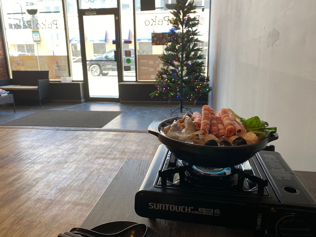 Peko Peko is sooooo good! We had spicy soup hotpot with a little request to have a bit less that spicy :P and Winson at Peko Peko nailed it! We also ordered a bowl of braised rice with pork and soy sauce, that s amazing! Like the taste of the pickled mustard green added in the bowl, that s really appetizing. Must also mention the Guang s pineapple beer (Non-alcoholic) available there. Probably it s the only place that you could get one in Northern Ontario. We had a happy dinner in this chill and relaxing environment