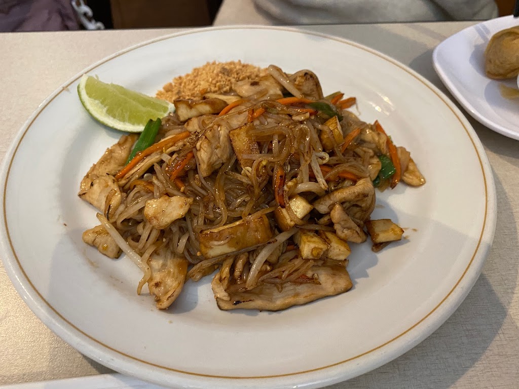 Restaurant was surprisingly good. The storefront is outdated and can be intimidating when walking in because of the hidden location, but I was pleasantly surprised with the food. I ordered the vegetable spring rolls to start and they were delicious! Then I had the veggie pad Thai dish and it was great! It came with tofu for protein. The presentation of the plate was nice. My coworker ordered the wonton soup, he said it was alright. It was a large serving. The prices for the food was good! The waitress who served us was very nice! Great little place to go for a quick meal! I would just like to mention that it is sort of like a 2 in 1 restaurant. The other side of the restaurant is a fish/seafood place. I sat on the Thai food side. There is a small restroom on the other side & I would not reccomend using it, as it is small and very out dated. The door was left wide open and while using the restroom I could hear customers talking, which was very strange to me. It is located behind an oil change place and next to an MMA gym so the location is a bit odd. Those are just my observations. But as mentioned above, the food was great.