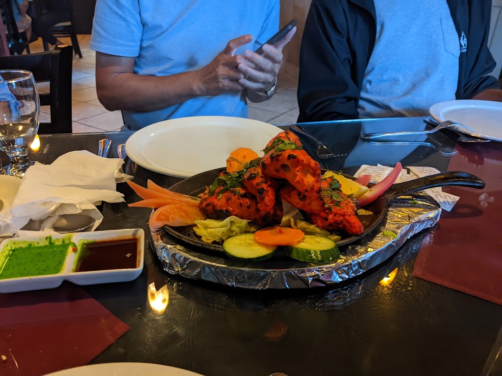 Food was good, service was mediocre. To their defense I think the server was new. She forgot to bring plates and cutlery until asked and she didnt tell us which dish was which. Pretty sure I had the vindaloo, it was not spicy at all though. My wife had the Tika Masala. I would give them another chance if I was in the area again.
