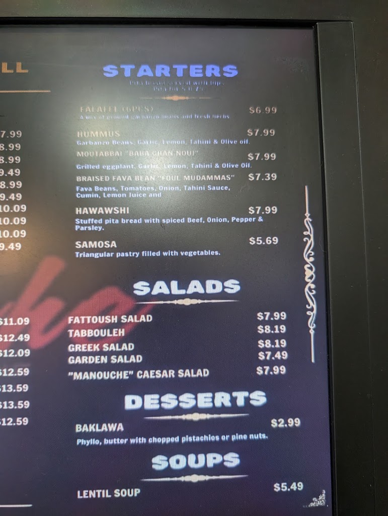 I love this place, I truly do. The lentil soup, falafel wrap, portion sizes, prices... amazing! But the food is inconsistent based on the chef that day. And just a thought, why is the place called Manouche when there s no manouche on the menu...?