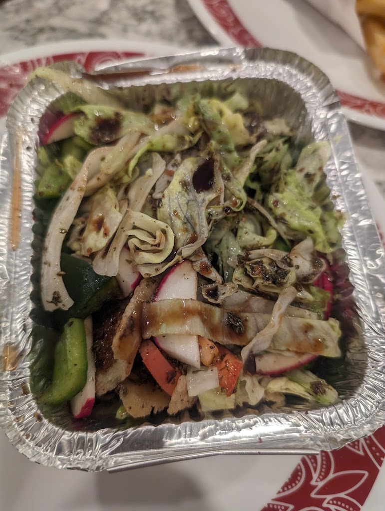 This place has seriously gone down hill. We were there yesterday for shawarma wraps. The chicken wasn t fresh, just reheated leftovers on the flat top. The 2 employees were arguing the entire time. We re unlikely to go back. They are bribing people for 5 star google reviews (which is against the rules). If the food was better the good reviews would come naturally.