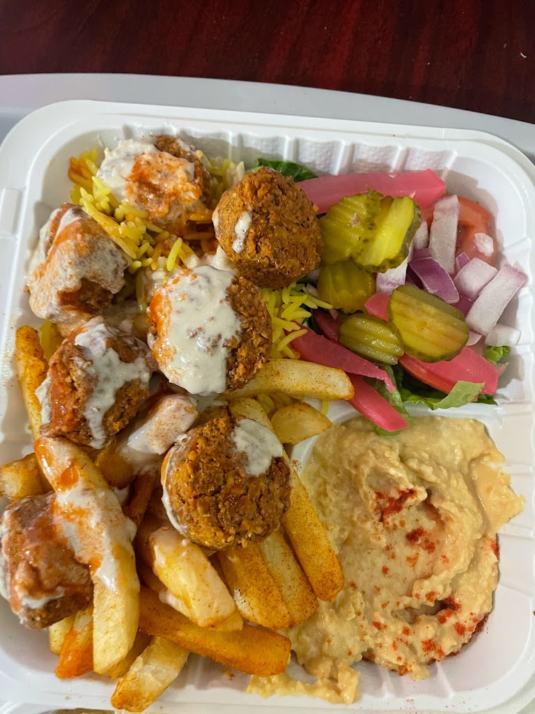 Got falafel wrap combos as takeout for dinner and was so delicious! So much food for a great price too. Will definitely be getting food from here again!