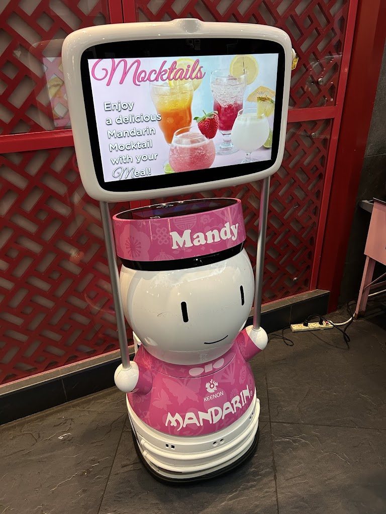 Havent been to Mandarin in a while. Little wierded out by the robot concierge. Usual good variety of dishes. Server was less than attentive, probably due to the rather noisy party of 50 behind us. They should have been put in a separate room. Got my birthday freebie! Vegetarian options: Good choices. Dietary restrictions: Everything thing s labeled Wheelchair accessibility: Wide aisles