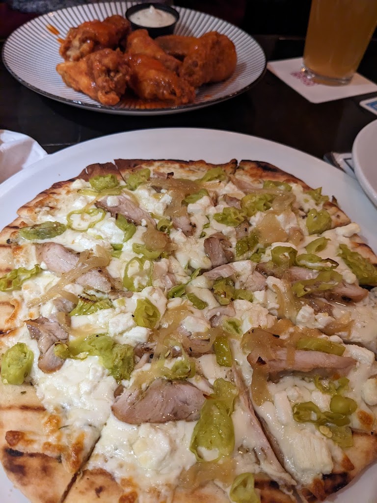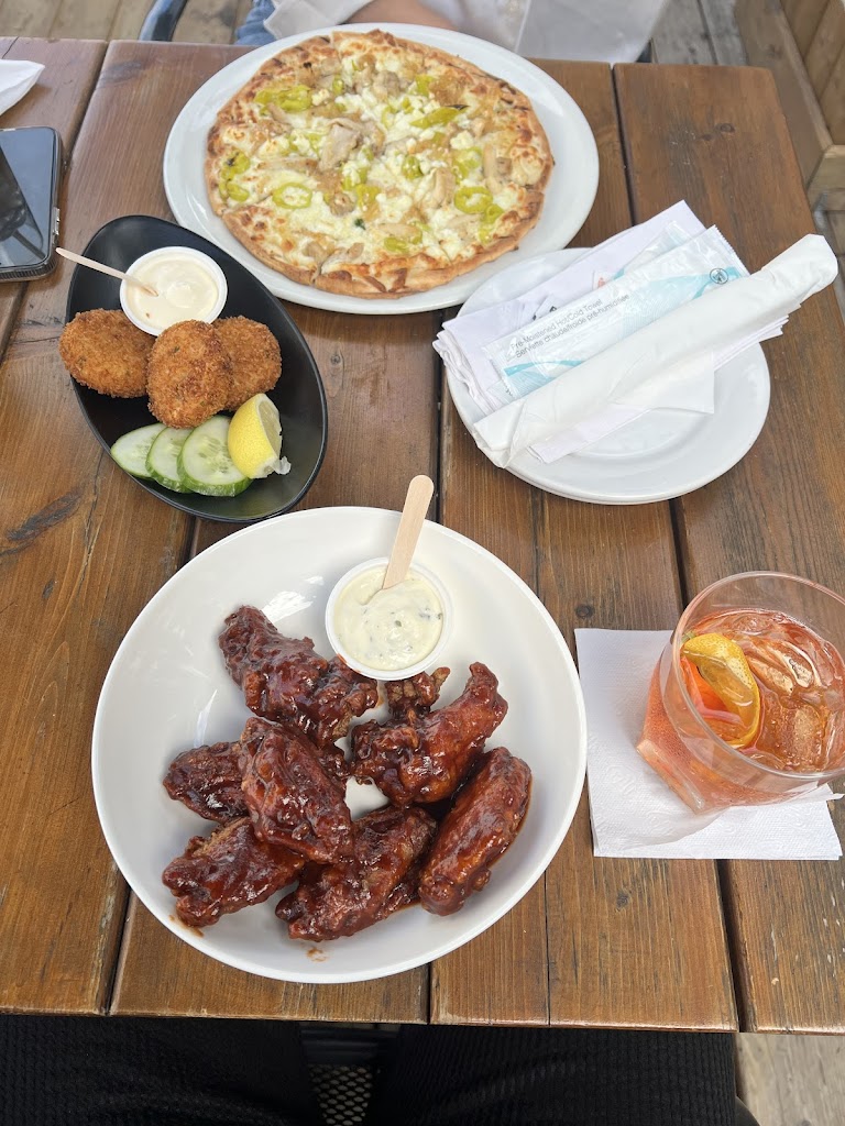 Hot honey chicken pizza is a must try. Chicken wing were crispy with good options of sauces. Multiple options for cocktails! Overall a nice patio experience. Keep in mind this place is on an expensive side.