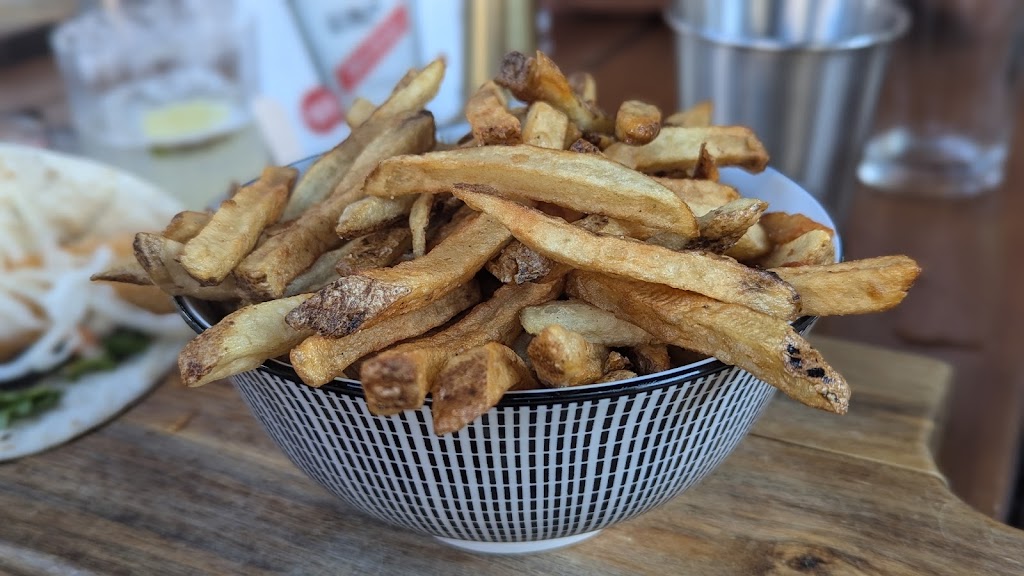 Big outdoor patio, friendly and attentive service, really nice mocktail options and loved the fries!