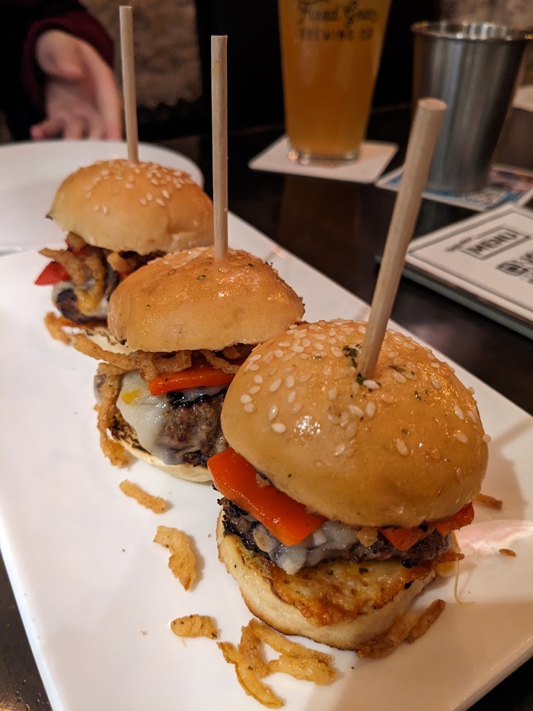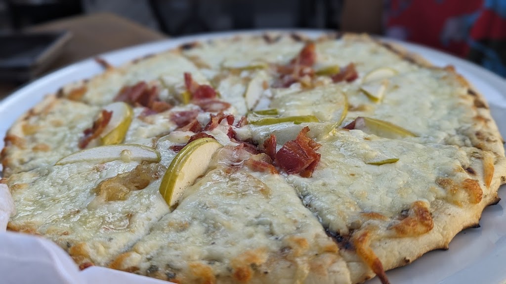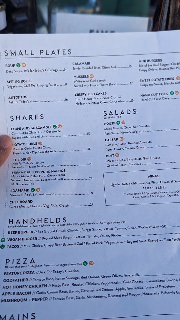 Tried for the first time and really enjoyed the food and the atmosphere. Friendly and attentive service as well. We split the beef sliders to start, which were tasty and had well balanced flavours. My partner got the wings tossed in Frank's - they were crispy, large and tasty, and came with a yummy dip. Would have liked to have been given some veggie sticks to go with them, they were kind of sad without a side and carrots/celery are a classic. I got the hot honey chicken pizza per the server's recommendation. I assumed it was breaded chicken pieces (when I think "hot honey chicken" I think Southern fried chicken) - it wasn't, but it was still really tasty. Loved the combo of the cheeses with the caramelized onions and honey. My favourite thing though was the drink I ordered, "Leaf me in the morning" I think it was called. A delicious bourbon & apple cinnamon drink, very well made with a sugar rim. Yum! We'll come back for sure. PS they played great music as well! For reference, this was around 8pm on a Wednesday.
