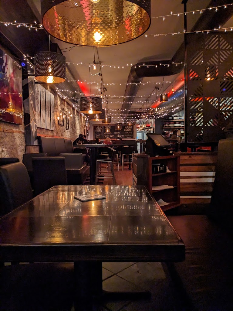 Busy and happening spot, with a warm and inviting atmosphere. Busy staff due to the number of patrons but they tried their best under the circumstances.