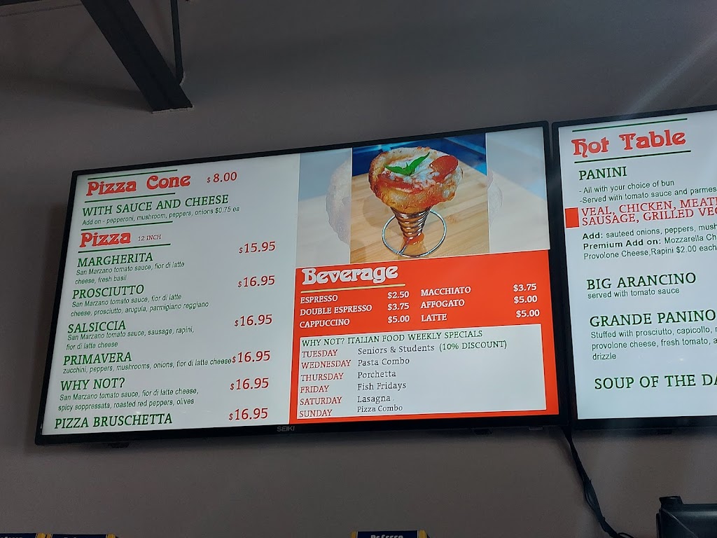 Chef Tony did not disappoint.. the authentic Italian Prociutto Pizza was outstanding made with high quality ingredients. The flavour was excellent. Followed up with an espresso and Canoli nothing better! Parking: Free parking and easy to access.