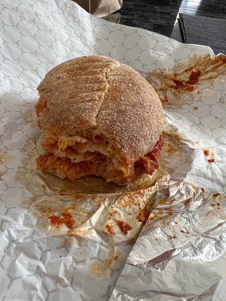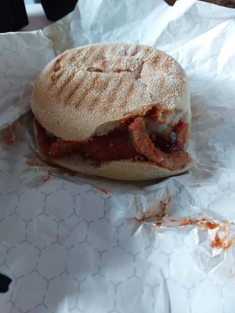 The chicken on a bun is amazing. New favourite sandwich. Can t wait to go back and try the pizza and gelato when I have more time. Wish they had pasta at the hot bar because the tomato sauce is outstanding. Food
