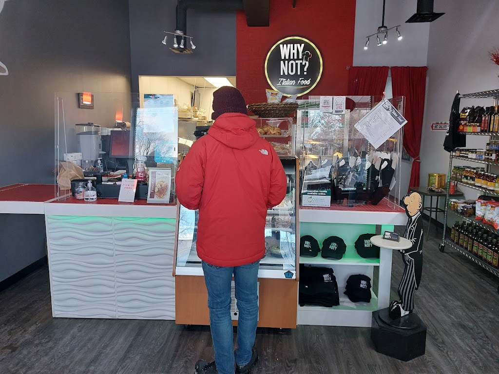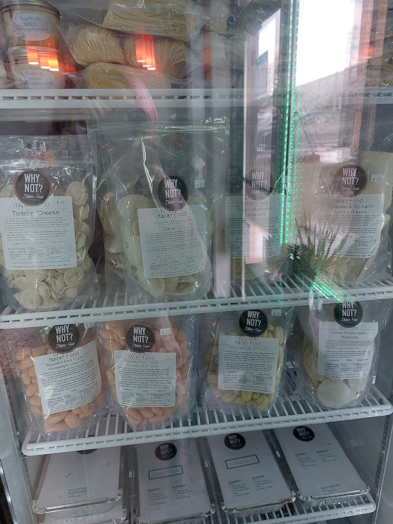 My standards for Italian food are very high thanks to my grandfather in-law, and Why Not managed to blow away my unreasonably high expectations. I think the most distinct aspect of the taste and quality of the food is the sauce. I ordered a pizza cone with pepperoni and it was the perfect balance of tart tomato, basil notes and genuine mozzarella cheese. The veal sandwich was also ordered, which was highly praised. We grabbed some desserts while waiting for the food to get packed up, and I highly recommend the chocolate chocolate cannolis. Some Italian pantry staples like pasta and olives are available on the shelves, and the freezer has ravioli and gnocchi for purchase. The service is exceptional - the cashier was very eager to explain all the desserts to us and was so friendly! You can see the kitchen from behind the counter and it looks spotless, as does the front of store. I can't recommend this place enough if you're a fan of Italian food. Looking forward to trying their pasta and lasagna!!