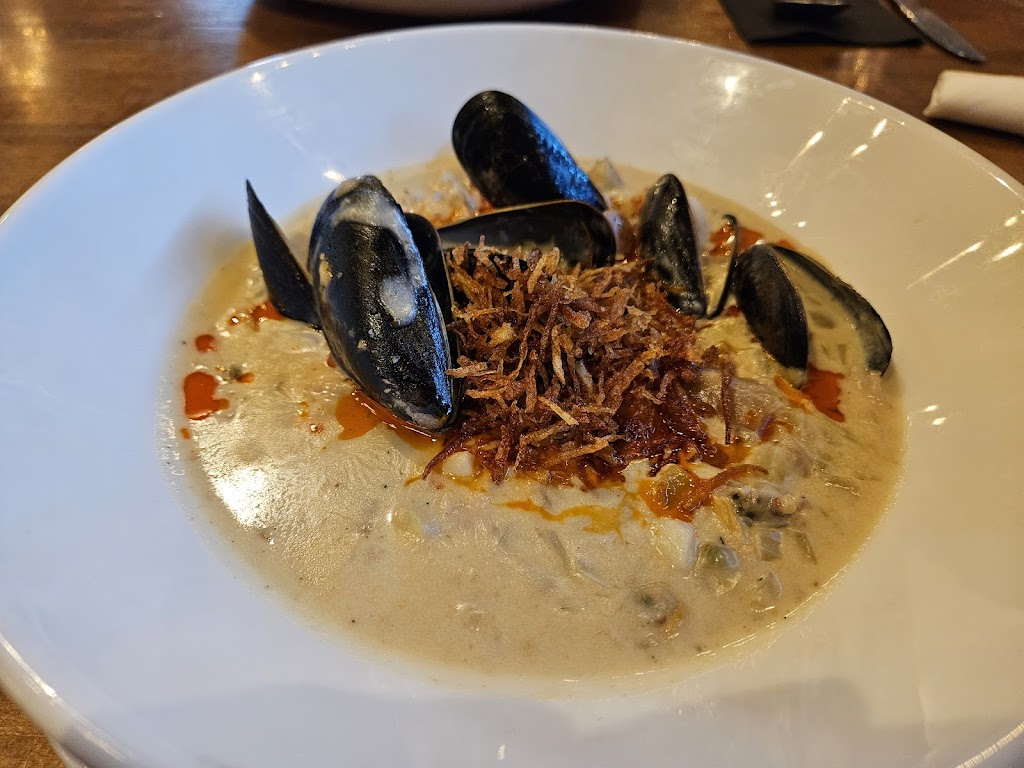 Classic pub environment. Music not too loud, hockey games on TV. Came here for the chowder and it was not bad. Definitely more like seafood soup vs thick chowder but the mussels were thick and juicy. Scallops were more like freezer nuggets. That said - food came out hot and portions are large and filling. Service was friendly and nice but ok. Had to ask for utensils twice, the second being a spoon for the soup. Beer was great Would come again and can recommend, but keep your expectations in check.