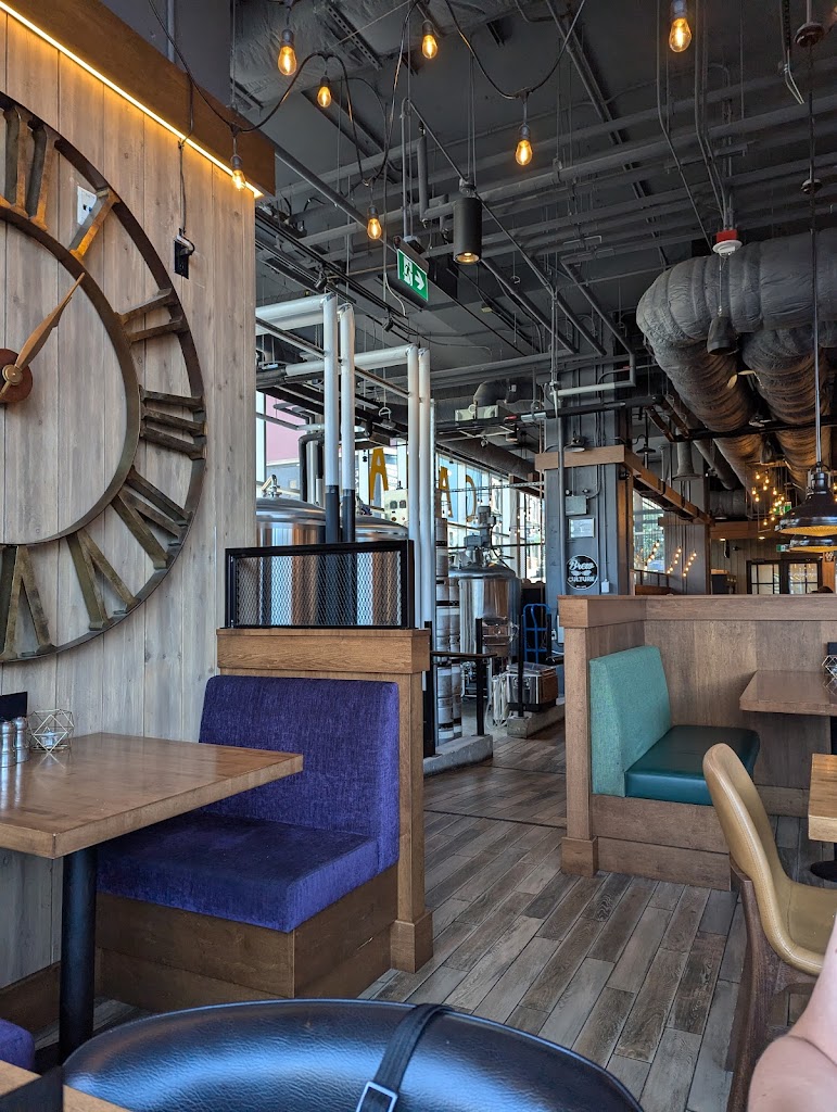 I ve been here several times. Staff are all very young and seem to be un-attentive to the point where you have to wave them to get service. Several just sitting on their phone and chatting with people. Beer is well made, nothing experimental, mostly safe and traditional styles. Food is good but kitchen is slow. Overall an an average brew pub. I would keep coming back. Update: went back again and same issues. This time my food was soggy. No soap in the bathroom. I asked them to refill it and it wasnt done. I basically had to eat my food without washing my hands. And left without my hands washed. Won t be going back.