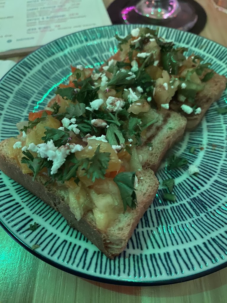 Cool spot with good music. Food was tasty. Had the bruschetta, tacos and a beef patty. The jerk chicken taco was VERY spicy, I can handled my heat and it messed me up. Approach with caution. Overall great meal, authentic flavour and cool plates and ideas. They were sold out of the scallop dish which I wanted to try.