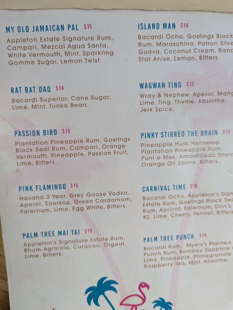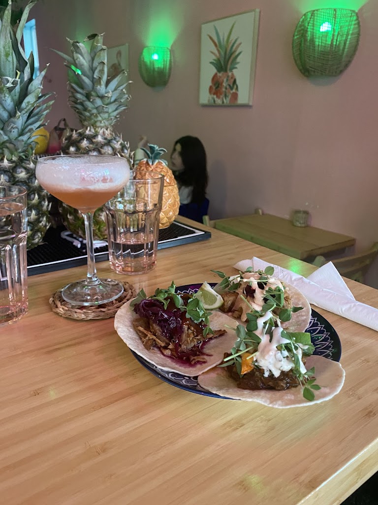 Amazing!! Will definitely be back Absolutely love the vibe Meech and Donny have created. You feel like you re stepping into a little Caribbean paradise. The music makes you want to dance, the drinks-even the mocktails for me were soooo sooo good. And the food is insane! The decor is so cool too The pinks and the neon and the old school movies playing on the tv. I can t wait to go again and again. It s one of the top places I recommend when folks ask for suggestions on where to go. Couldn t love it more. Vegetarian options: Yummy jackfruit tacos and lots of veggie snacks like popcorn and cotton candy