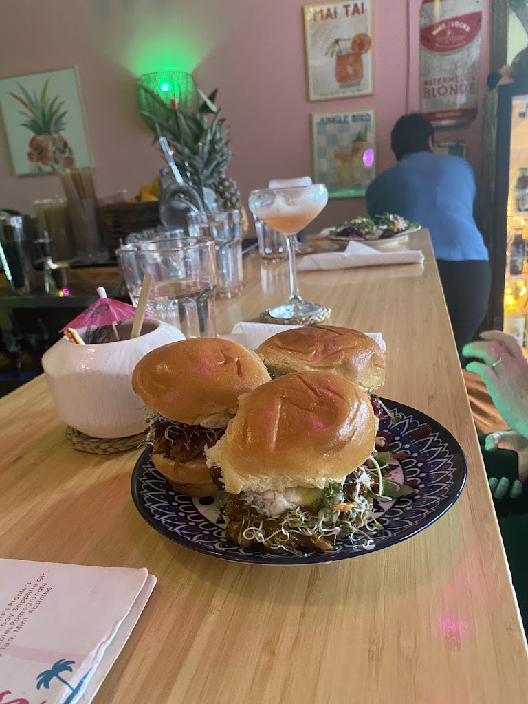 VIBES ! If you want to feel like you re on vacation hit this spot. Music and decor are on point to transport you. Food was awesome, perfect small plate portions so you can try a bit of everything, which we did. Loved it all but particularly the bbq pork slider and the fries, love me some matchstick fries. Servers are super friendly and personable!
