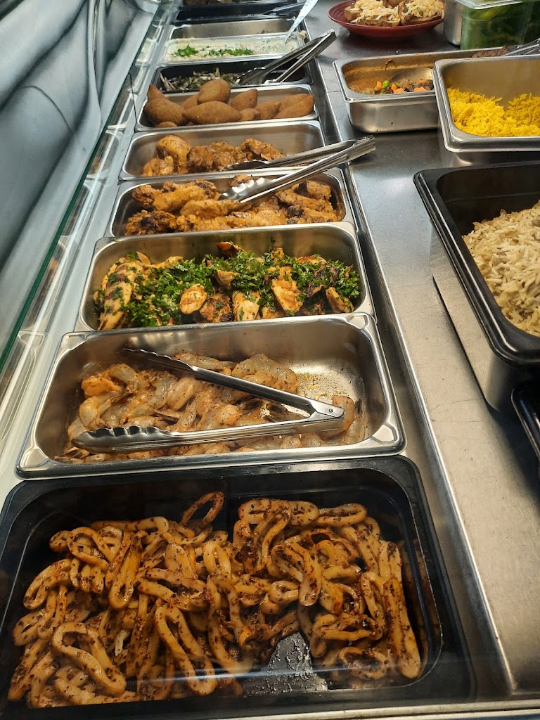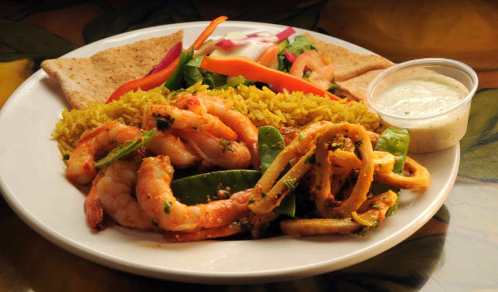 Absolutely delicious food and great customer service. My parents wanted to try alittle of everything so it was suggested we order the Dinner combo for 2. There was beef, chicken, perogies, shrimp and calamari (calamari was additional because we wanted to try it as well). It came with 3 kinds of salad (tabouli, bean salad and another salad). Also had pita with hummus and tazaki. Plus we were given a small dish of free lentil soup which was delicious too. The beef and chicken were tender and tasty. The prawns were large and fresh. The calamari was tender and cooked perfectly. BUT the rice was my favourite the rice was beyond delicious. I could eat the rice everyday. Large and generous portions of food. $55 for dinner for 2. It fed 3 of us and we were stuffed and there was food left over. Tarek gave us some falafels to take with our leftovers. Fantastic, friendly atmosphere. So helpful and accommodating with food suggestions. I highly recommend Tarek s cafe.