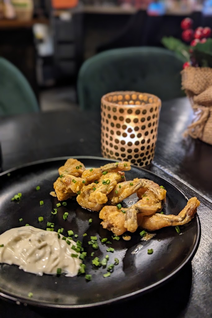 Great service, tasty plates. Had the scallops frog legs, steak and pork belly. Everything was seasoned well, good flavour. The fried frog legs just tasted like mini chicken wings, wasn t my fav but scallops were great, steak done perfect medium rare and pork belly sides were very balanced. Service was kind and efficient. Would go again.
