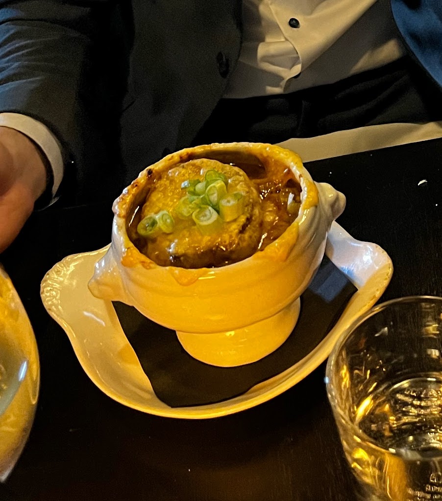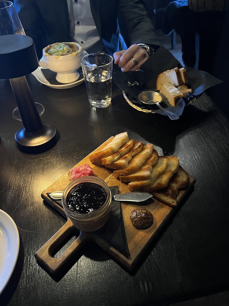 had such a wonderful time at bon temps last weekend. cute and cozy spot, love the atmosphere. would be great for a date night. speaking of a date night- ladies - one of the bathrooms (there are two) has a great full length selfie mirror (bathroom is gold black and eggplant, dress accordingly). now onto the food. i eat at a lot of french restaurants and this was most definitely the best pate i’ve ever had. topped with a blueberry compote, the pate was served at the perfect temperature, for both flavour and spreadability. the bread served with it was warm, light, buttery, and perfection. the grainy mustard and pickled onions added great flavour and acidity when building the scrumptious little toasty. the french onion soup had great depth, the layering of bread and cheese did not mess around, was a large portion, and the serving bowl complete with lions heads was just darling. the frog legs were perfectly cooked, covered in a buffalo-esque sauce and served with blue cheese. perfect for someone trying frog legs for the first time, but personally i would have enjoyed a more sophisticated flavour. pasta primavera was rich and buttery in flavour, yet was a light sauce. served with a large mozzarella ball on top if you’re into that kind of thing, we found it was great without. this pasta is seasonal. the only thing that really disappointed was the bread basket. the bread was toasted ever so slightly and served with cold butter. i know- french restaurants love their cold butter. but the bread wasn’t nearly hot enough for it to be warranted. and the bread itself wasn’t incredible. totally fine, tasty, but maybe not worth the calories. i also took off a point off because the plates had finger smudges on them which is a bummer for presentation and photos. i had a non alcoholic espresso martini- it hit the spot. was missing something but im certain that the thing i was missing was the vodka! :’) overall, i want to drive back to hamilton right now to have more pate. definitely recommend.