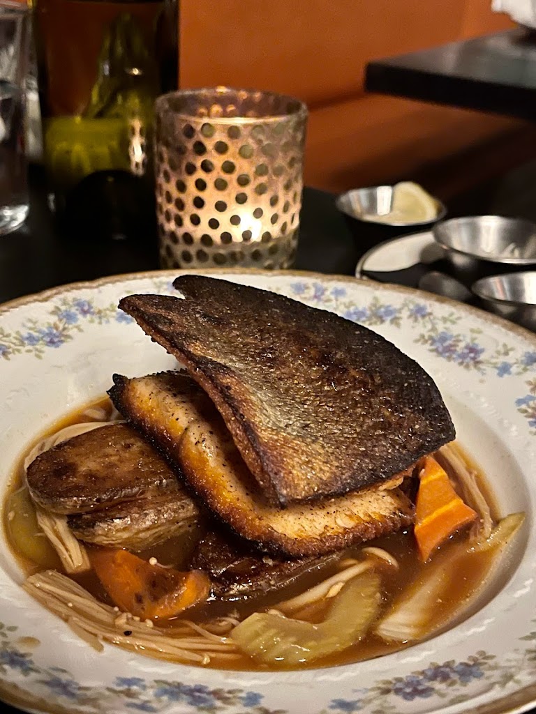 went for a friends bday, i didnt say anything bc i didnt want to make it awkard for him, but I was really disappointed. the wine list was spare, and did not include regions, just nations. When I asked for something to recommend with my meal, she gave me a sample, but did not seem to know what to choose. There was also nothing really exciting on the list. It took way too long to bring the bread, and the bread was medicore. She left a giant bottle of supermarket heinz on top of the bar, and so I had to look at that for the rest of my meal. The butter looked like it was herbed, but none of the herbs really tasted much of anything. The apps and main were disappointing. I started with the frogs legs, but they just treated them like chicken wings; the breading of the frogs legs overpowered the delicate meat. Moving onto a mushroom dish for my main, the rice was under cooked, and it might have a bit of shell left from the egg. The sous vide egg was great, and the rest of the oyster mushrooms were well cooked, but the dish was mostly rice. I had a Negroni for my second drink, and the server walked away before my last question was answered. Lastly, this was not the servers fault, but I am male presenting, but non binary, and i was wearing a nice skirt, and someone at the bar looked me up and down a few times, and then laughed at me--actually laughed at me; not the fault of the resturant, but seriously it did not make me feel welcome. We didnt risk dessert, and for a fairly pricey night out, it was disappointing.