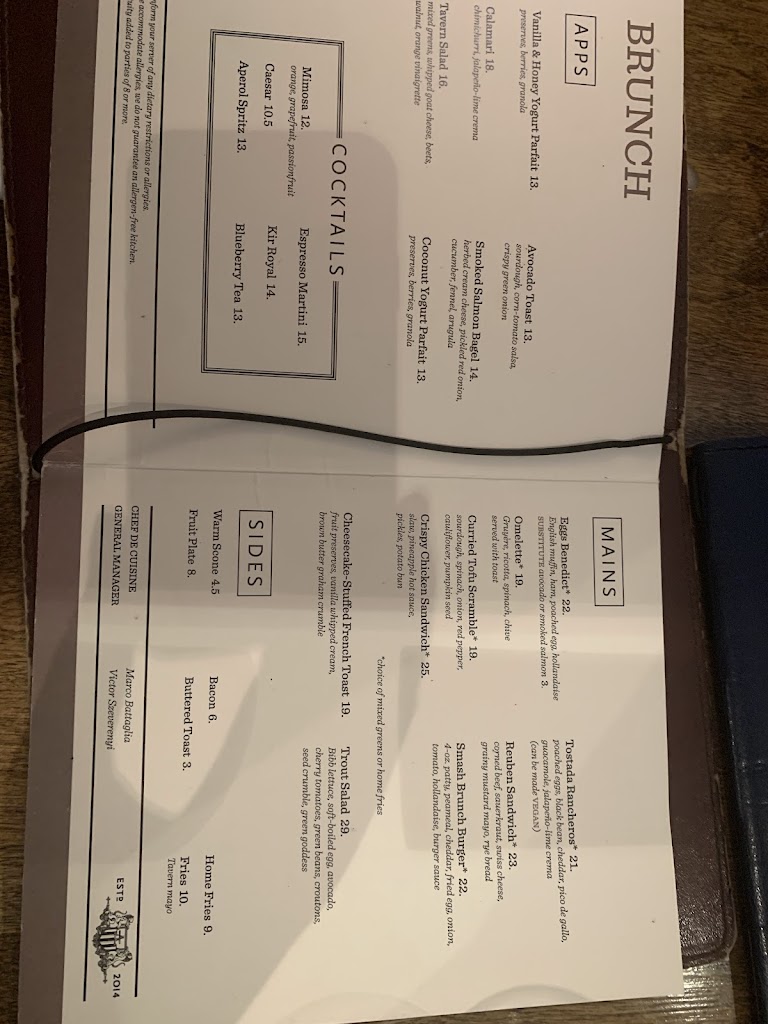 Taos Google Restaurant Reviews Great ambiance inside, very old school and sophisticated for a brunch place rather than the newer hip and modern brunch restaurants popping up. This restaurant does its classics very well. We got the smashed burger and the eggs benedict with home fries and they hit the spot! Pricing was a bit on the higher end for classic brunch items but the service was great and worth it. Food: 4.5/5 Service: 5/5 Atmosphere: 5/5 FINAL SCORE 4.5/5 Parking: Rexall beside has a lot, also Street parking.
