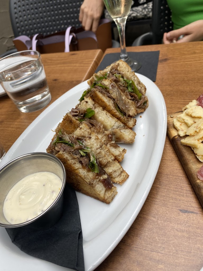 Great lunch spot. Tasty food, small focused menu (which I like). Great service. A bit on the pricey side, but the quality was high. I had the chicken parm sandwich, which was pretty solid. Fries and salad were good. I d try the duck grilled cheese or burger next time.