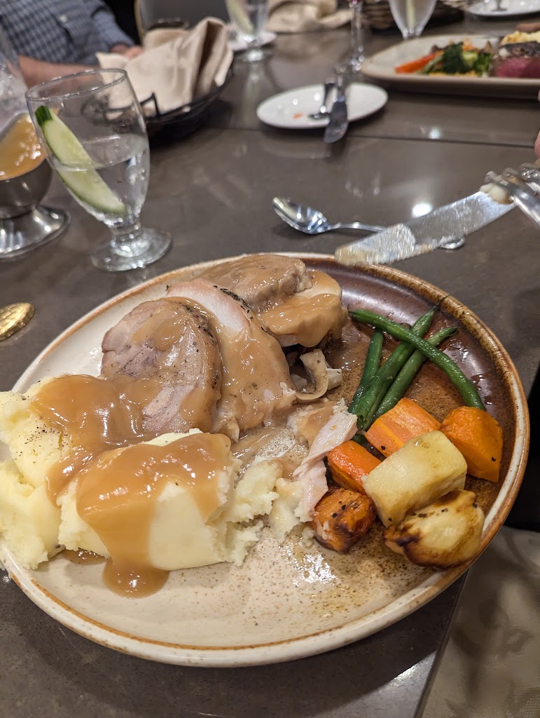 Our family enjoyed a wonderful Thanksgiving dinner here on Sunday. We were a party of 11 and our Waiter was excellent. Everyone seemed to have ordered different food and all meals came out together. Another great meal here.