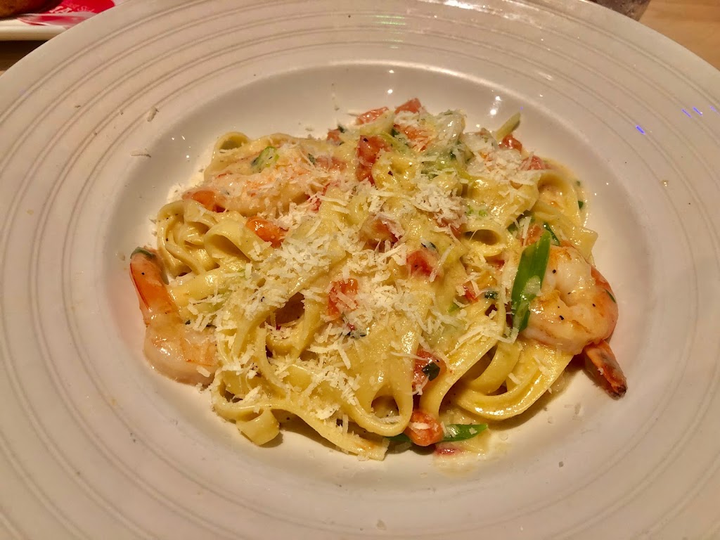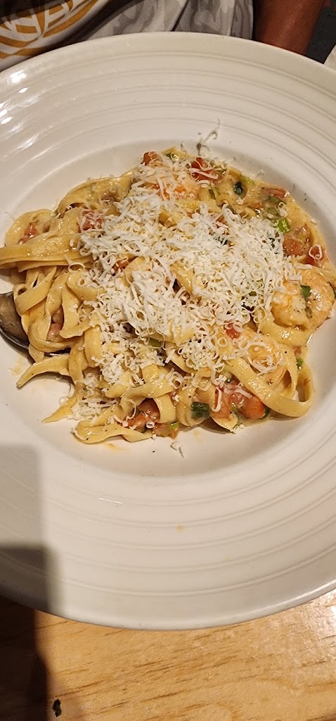 The waiter was very good. The dish I ate was Alfredo pasta with giant shrimp. The only thing was that the shrimp had tails. I had to remove it to eat my dish, but it was very good.