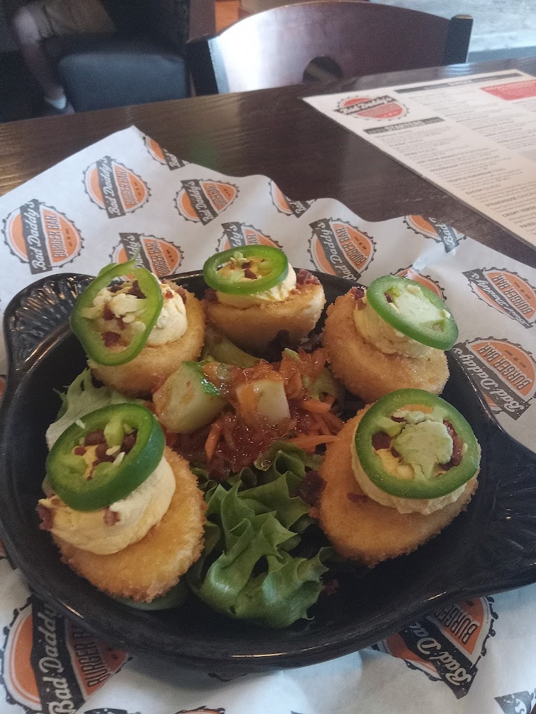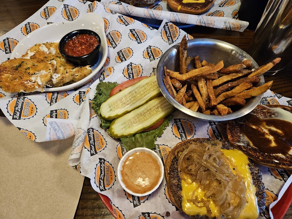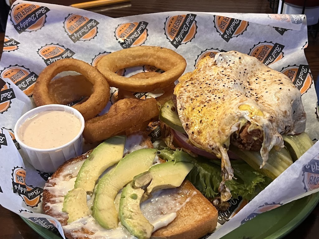 If you’re in Huntsville, Alabama, and craving a meal that’s big on flavor, fun, and presentation, Bad Daddy’s Burger Bar on S. Memorial Parkway is where you need to be. I had the pleasure of dining there recently, and it was an experience worth savoring. We kicked things off with the “Not Your Mama’s Deviled Eggs,” and let me tell you, these were no ordinary deviled eggs. Each fried egg white was crispy perfection, adding a delightful crunch that you don’t normally expect in such a dish. The sweet and spicy glaze danced on the palate, while the bacon bits provided that savory, smoky finish that took it over the top. The presentation was stunning—a perfect starter that set the bar high for the rest of the meal. Then came the “Sean’s Meal Deal,” which I crafted myself. A juicy fried chicken patty, seasoned to perfection, was nestled on a slice of toasted sourdough. Topped with fresh veggies, a creamy layer of avocado, and a fried egg that oozed just the right amount, this sandwich was a harmonious blend of flavors and textures. The sourdough gave a slightly tangy crunch that played perfectly against the richness of the fried chicken. Paired with golden onion rings and a side of house-made dipping sauce, it was a masterpiece of comfort food. We also tried the “Swiss Burger with Onion Strings,” and the presentation alone was enough to make anyone stop and admire the plate. Crispy onion strings stacked high on top of a perfectly cooked beef patty, melting Swiss cheese cascading down the sides, and the buttery toasted bun—each bite was a flavor explosion. The onion strings added a light, crispy element that contrasted beautifully with the juicy burger and savory cheese. Bad Daddy’s Burger Bar doesn’t just deliver on the taste; they serve their dishes with flair, making every meal feel like a gourmet experience. Whether you’re a burger lover or looking to try something new like those deviled eggs, this spot promises bold flavors and creative spins on the classics. Definitely a place worth adding to your must-try list in Huntsville!