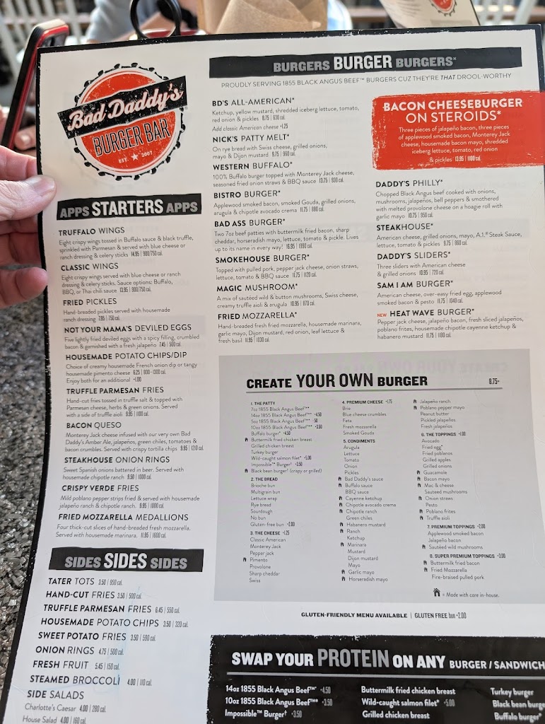 I only give one star because Google requires me to give one star. I visited Bad Daddy s Restaurant on October 28th, 2024 around dinner time. I ordered the Bad A** burger and the next day I began to develop abdominal cramping, fever, and diarrhea. I m usually a very healthy individual that never gets sick so I m convinced that I contracted E. Coli from eating the burger meat from this place. I have already reported this place to the local health department. Use caution when eating here.