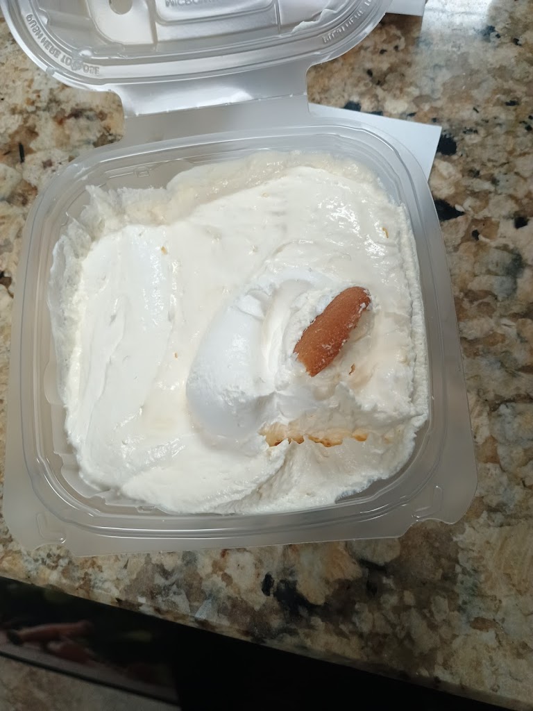 Banana pudding was only whipped cream, bananas, and vanilla wafers. There was no vanilla pudding at all.