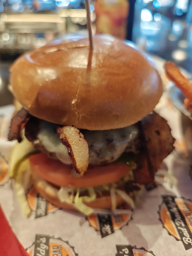 The food is always amazing! Fried pickles are the absolute best appetizer! I leave so full I can t breathe LoL! Today we had the Bacon CB on Steroids, Smokehouse burger and the Bad Daddy All American with Fried pickles as our appetizer of course! The staff is friendly and whatever waitress we get is always the sweetest!