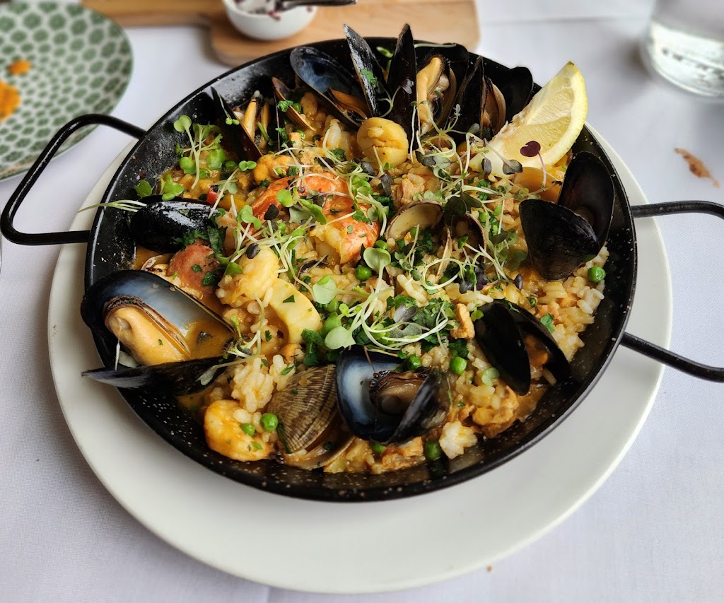 The two meals I ordered looked good and tasted okay, but I will try other meals next time and wont order the same ones. The portion of paella is quite large, one person would be very full and unable to have dessert. The portion size of the fish fillet is normal, and you can have a dessert after finishing it. Normal western food price. The restaurant decoration is quite cute and the dining environment feels good. Parking: There are approximately 24 parking spaces