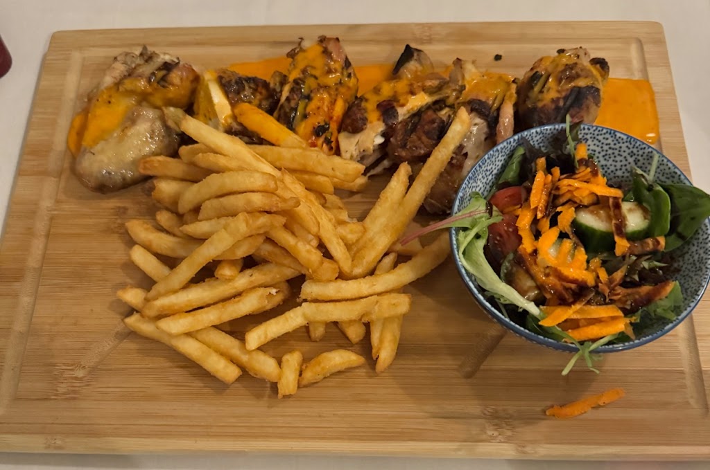 We were lucky enough to travel to the Algarve-- South West Portugal. Mom and Dad guilted us into making the trip to their winter hideaway. We had no money, but off we went! A 3 day whirlwind Paris romp, then Discount Ryanair flight down to Faro. Long story not so short--- Peri Peri Chicken is a Regional Go To. ( Pronounced Peer Ree). Charbroil over wood or charcoal. Spice to wake your palette, but not Ghost Pepper stupid. If you cant fly off to Portugal this week, get a donkey and ride to Huntsville. Ontario, Canada- not the Alabama version. Tie your donkey up at 21 West Street South. Give it a carrot and an air kiss. Stroll past the expansive deck. Kind of a secret entrance at the back. Suddenly a welcoming staff member- probably the precocious Gabby. The family owned restaurants youngest expert in client relations...maybe 12 years? on the planet and more seasoned in customer experience than a Target trained cashier. I dodged the low hanging décor and found we were led to a Muskoka room table. Our preference. Humble locals, we were flanked by Fairy Lake cottagers on the left. Our local MP and family on the right. The person burdened with making our date night wonderful was relaxed, fun and real. Muskoka is filled with fake, but not here. Cataplana is authentic. Had that last time and loved it! However....the fire roasted Peri Peri Chicken is the foundation of this authentic menu. We purposely over-ordered for the left-overs. What a ridiculous term. Over order, and be happy you did. Portugeuse House is owner operated with love, skill and joy.
