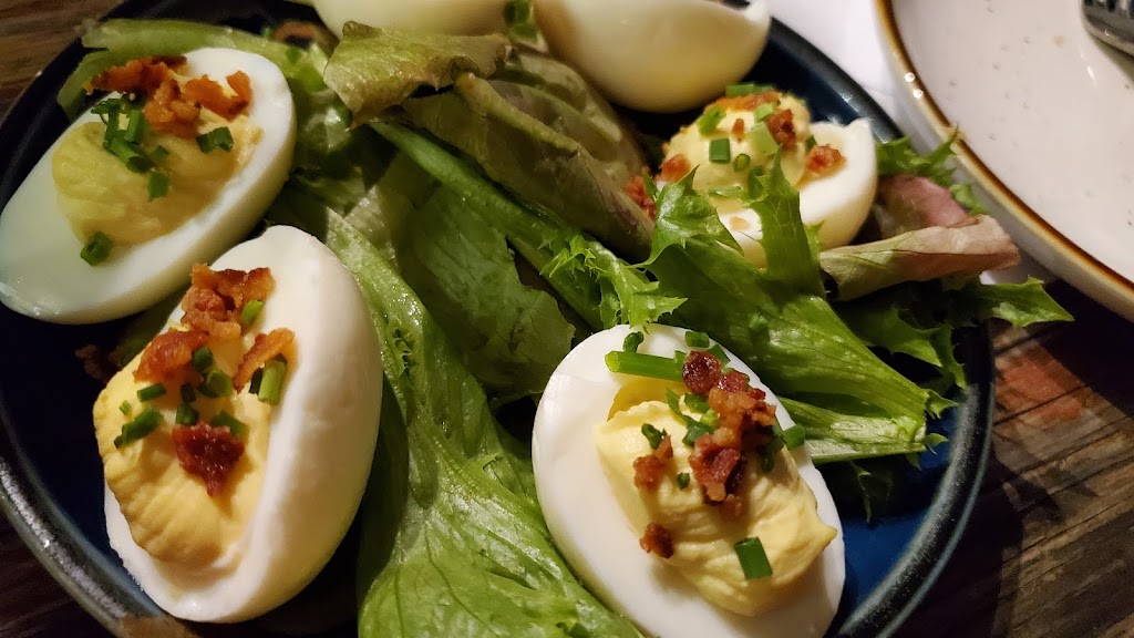 The deviled eggs are seriously good. Such a great appetizer! Good wine list for Happy Hour. Non-pretentious, but knowledgeable wait staff. Id recommend a reservation. Its a tiny place, & they fill up fast. 2022 update: Theyve moved to the coolest location on the Huntsville Square: A tiny bar (includes outside patio) overlooking Big Spring Park East. Theyve managed to quiet the din of the Irish pub that used to be in this new space. Menu even better. Terrific happy hour spot -- but youll want to stay for dinner! 2023 update: Definitely get a reservation. People are finding out about this place.